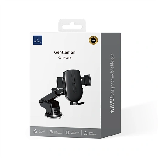 The WIWU Wi-CH054 Gentleman Series Car Holder is a premium dashboard and windshield phone mount designed for safety, convenience, and durability. Engineered to securely hold smartphones between 4 and 7.2 inches, it combines a strong suction cup, 360-degree rotation, and high-temperature resistant materials, making it perfect for driving, navigation, or hands-free calls.