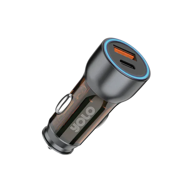 Yolo Hyper Car Charger Y-521 | 30W PD & QC | Dual Port USB-A + Type-C | Cable Included